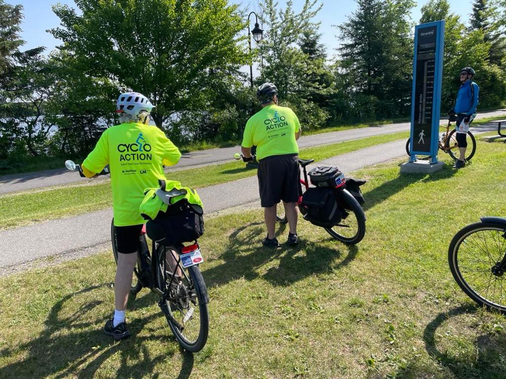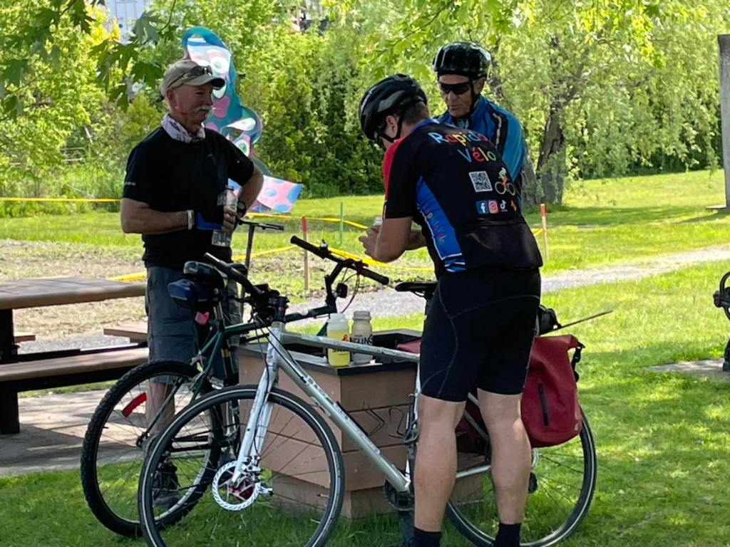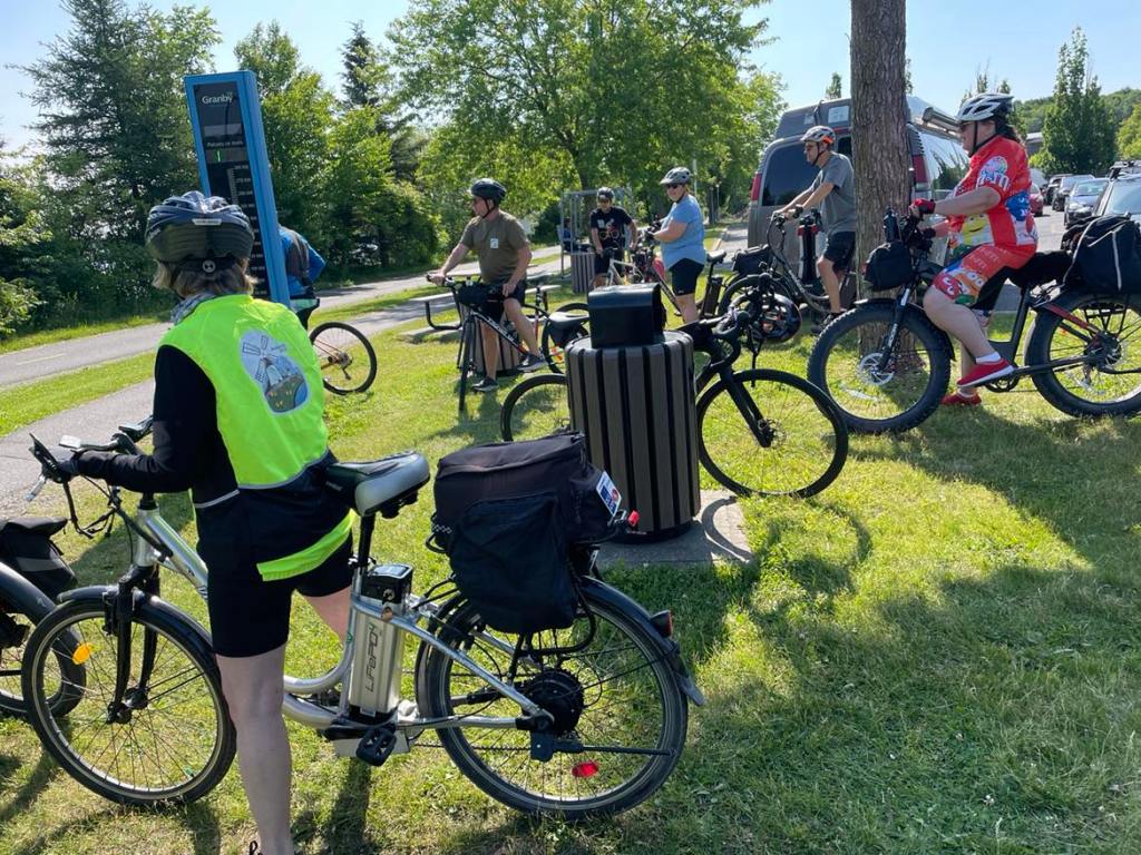Aussi invitée, la mairesse de Granby, Julie Bourdon, n’a pas pu venir pédaler avec nous. Mais elle nous a souhaité bon succès et du beau temps.