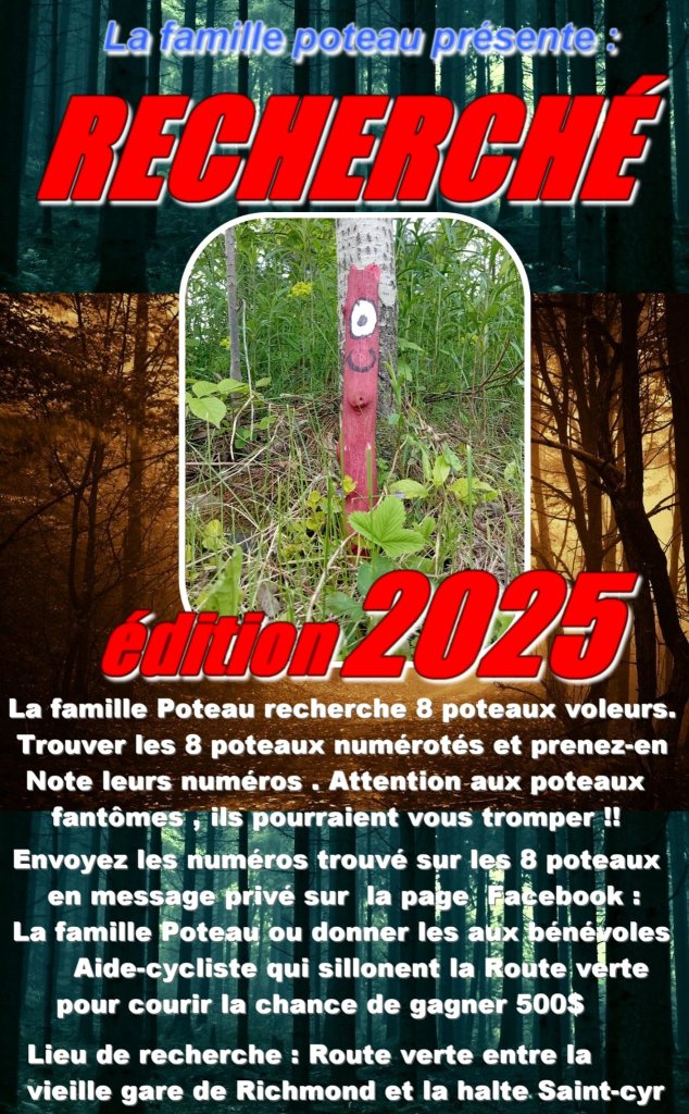 Les 500 $ promis seront certainement remis, car quelques cyclistes lui avaient fourni les bonnes réponses. Le tirage parmi ceux qui auront repéré les Poteau dissimulés le long de la piste cyclable aura lieu à la fin saison de vélo, précise M. Barrette.