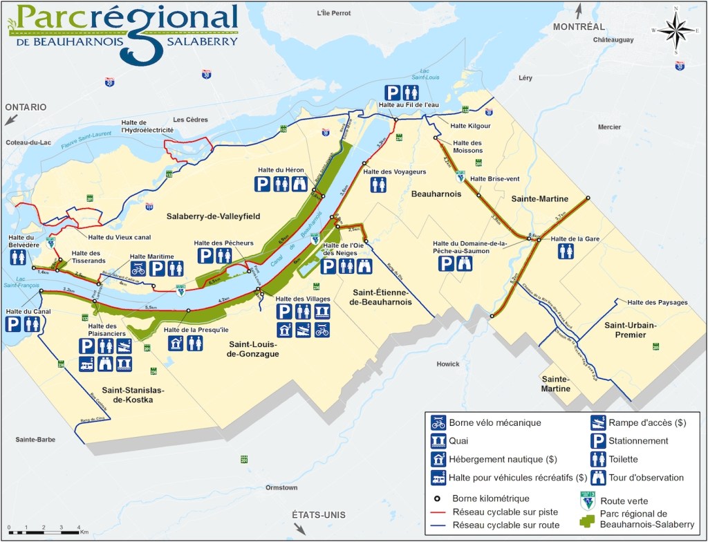 En longeant les berges de l’impressionnant canal de Beauharnois et en traversant les terres agricoles, on peut atteindre les secteurs de Beauharnois, Saint-Étienne-de-Beauharnois et de Sainte-Martine.
