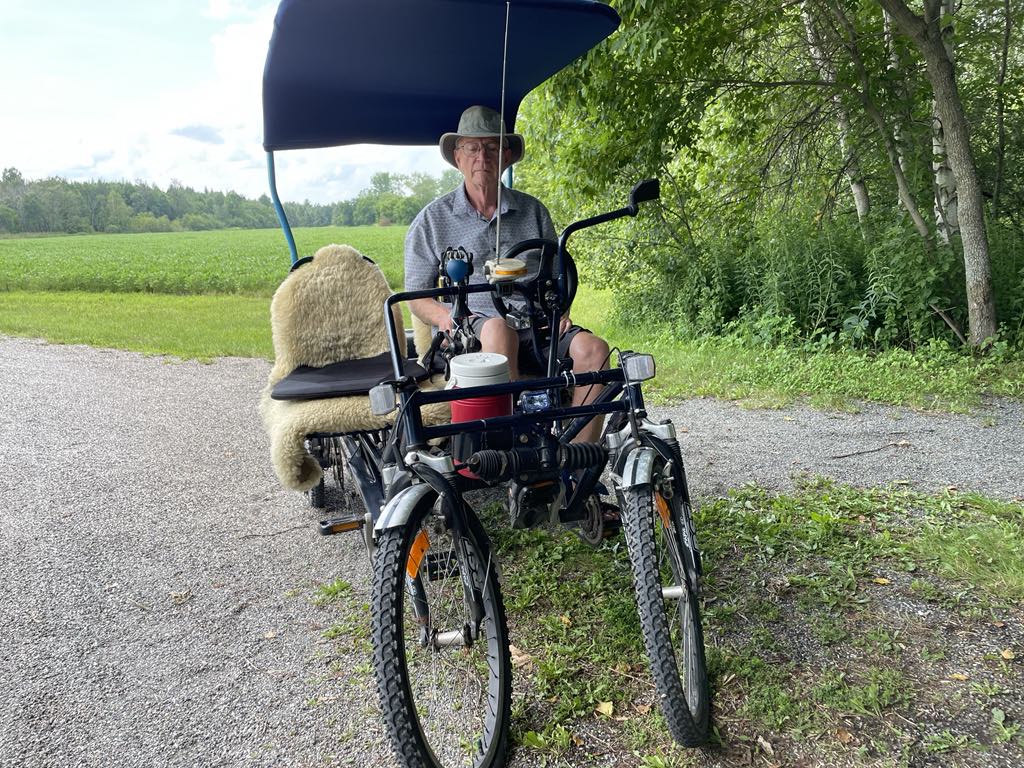 Ce résident de Plessisville a mis au point un vélo électrique à quatre roues de style «côte-à-côte» hautement perfectionné.