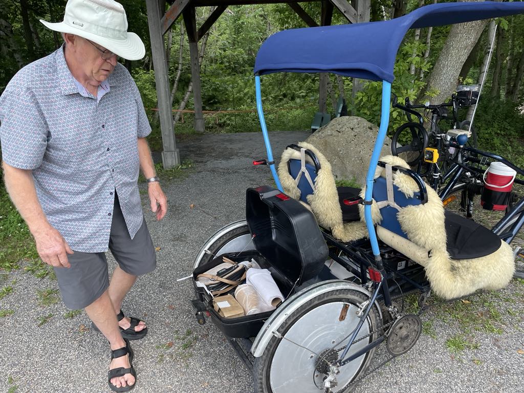 L’idée lui est venue lors d’une visite sur l’Île au Coudre. Le couple avait loué un véhicule du même genre, mais l’expérience n’avait pas été une réussite. Le pédalage ne lui convenait.