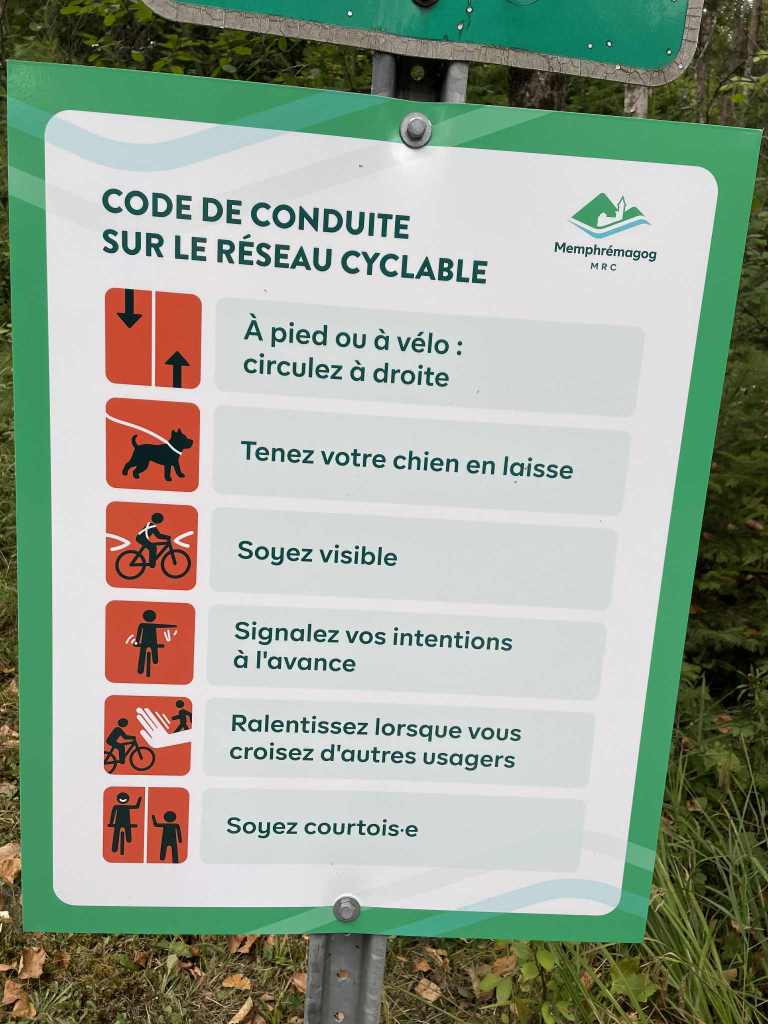 Ce code de conduite me fait penser à un autre établi par Tourisme Cantons-de-l’Est à l’intention des adeptes de vélo sur les chemins de gravelle.