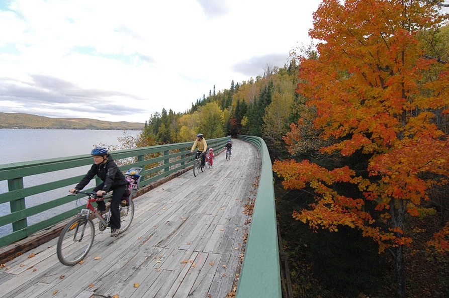 Atouts : Moins fréquenté que le P’tit Train du Nord, paisible et champêtre. Des lacs et des rivières sinueuses s’offrent en spectacle.