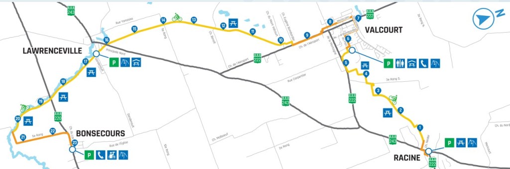 Une portion (environ un kilomètre) nous fait rouler sur une route provinciale (la 222) avant de rentrer dans Valcourt à la hauteur de l’aéroport. On a toutefois droit à un accotement assez large.