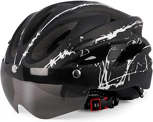 Ce casque pour adultes convient aussi bien pour la montagne que pour la route. Les lunettes noires éliminent efficacement la forte lumière du soleil, ce qui améliore non seulement le champ de vision, mais empêche également les éléments tels que le vent, la poussière, la lumière, etc. Lien affilié Amazon