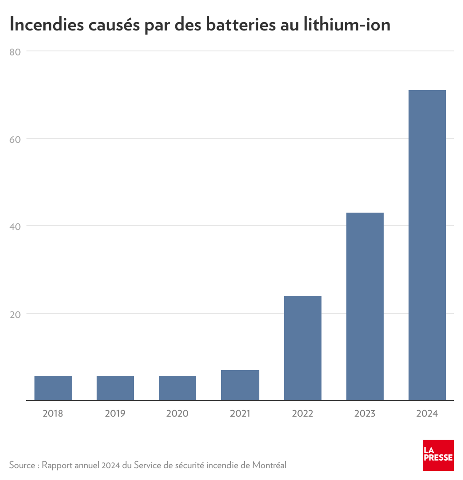 Dans un rapport du Service de sécurité incendie de Montréal, on parlait d’une « augmentation alarmante de 195 % » causée « en grande partie par la popularité croissante des appareils de micromobilité », soit les trottinettes et les vélos électriques.