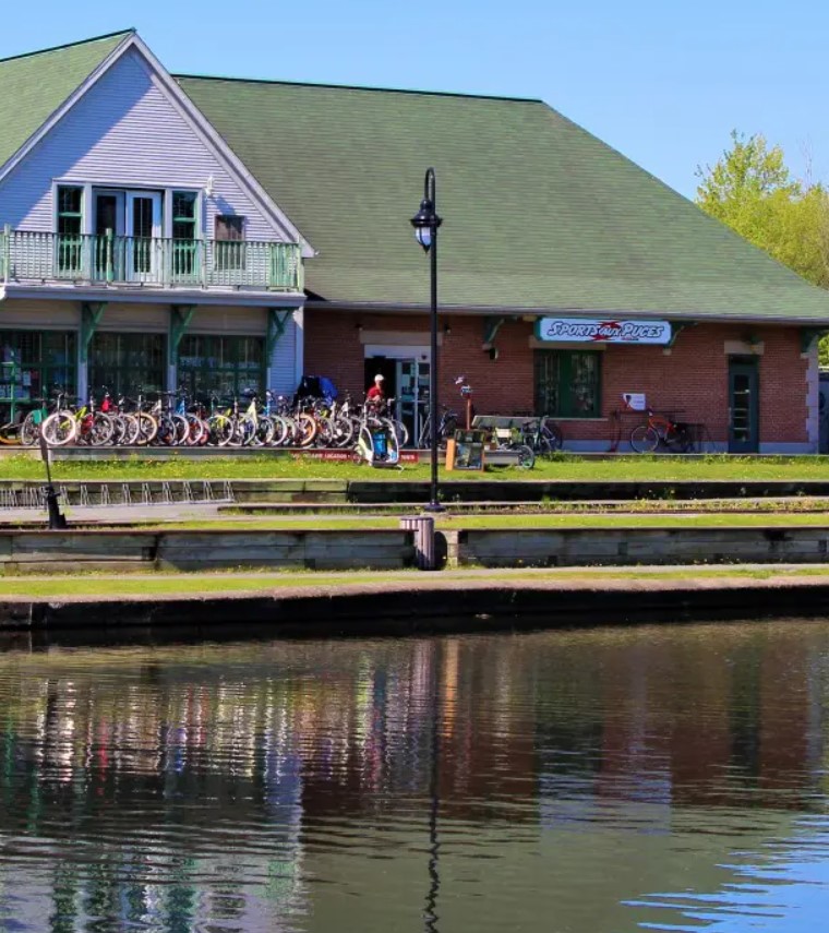 Le magasin de vélo est situé au cours d’un secteur grouillant de la ville, près du lac Boivin, de l’information touristique et du restaurant McDonald.
