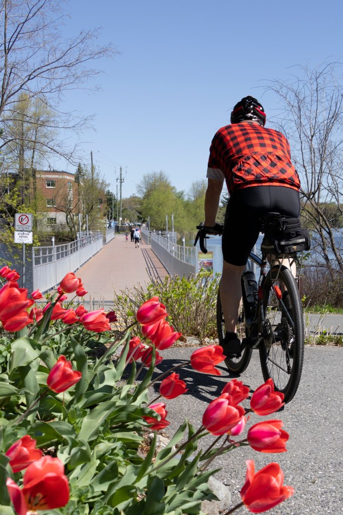 Les chiens seront admis sur le sentier pédestre asphalté du côté nord de la piste cyclable entre la rue de la Gare jusqu’au pont flottant.